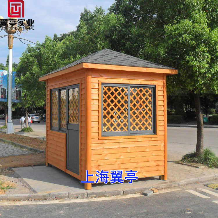 綠色環保節能、調溫調濕、隔音阻燃、防腐木崗亭優點包括:工程造價低、施工周期短、使用壽命長、易安裝易遷移。上海翼亭可按客戶要求訂做各種不同款式及造型的木質崗亭。