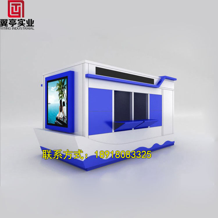 主要特點(diǎn) YT-S31售貨亭款式簡(jiǎn)單但是別致、采用藍(lán)白相搭配的的外觀色彩、美觀大氣、在售貨亭的兩邊還安裝有廣告燈箱、可以貼一些小廣告、給路過的市民朋友提供新上市產(chǎn)品的信息。