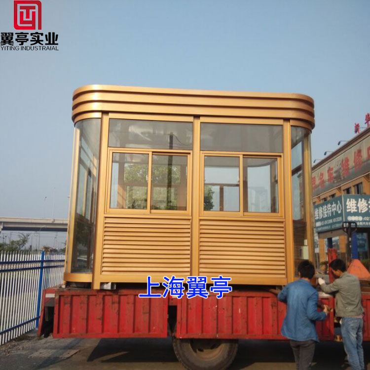 YT-G50鋼結構崗亭、 采用12#槽鋼為立柱經久耐用、四個角采用透明的彎鋼玻璃把鋼的穩重和玻璃的通透靈氣巧妙結合、外部配備土豪金氟碳漆、更顯美觀、這樣的崗亭不管放到哪里都是一道靚麗的風景線、YT-G50鋼結構崗亭就是嘉定區汽車4S店門衛保安亭。