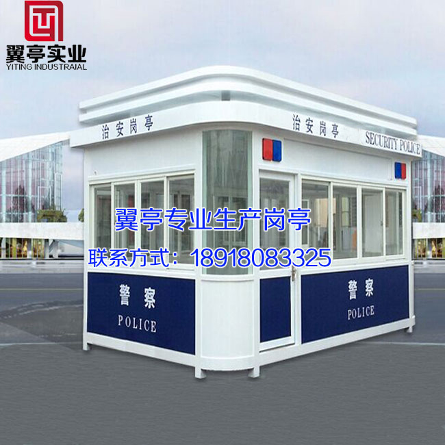 YT-Z17治安崗亭采用四個角為熱彎玻璃圓弧形設計、款式大氣美觀、外觀顏色采用藍色和白色相搭配、簡潔莊嚴、藍色也是是公安民警衣服的主要色調,也是治安崗亭的主色調、作為藍色,我們以白色作為襯托,更能展現其圣潔的象征、而四個角為熱彎玻璃、讓在治安崗亭內部的人視野開拓、在亭子內部辦公、也能觀察周邊情況!