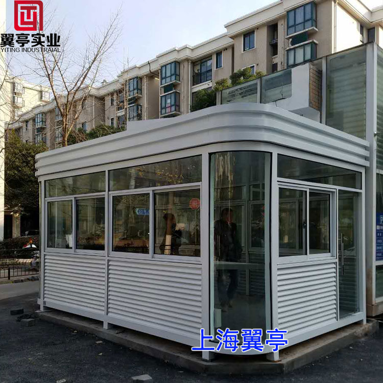 主要特點 YT-G58為小區的門衛保安亭尺寸為2.5m寬、4米長、高3米、占地面積為10個平方米、室內空間比較大、給室內的辦公人員提供了一個寬敞舒服的辦公場所、整個保安亭的外觀顏色也與周邊建設物相匹配、都采用的銀白色、讓整個崗亭看起來更為清爽、也給路過的人們帶來視覺上的享受!