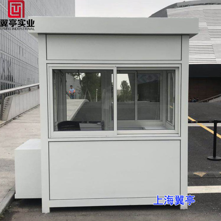 產品介紹:YT-D07為上海汽車研發中心保安值班崗亭。整個崗亭從設計到選材以及顏色的搭配和室內配套設施都非常的齊全。材料上我們精挑細選加厚的鍍鋅方管和金屬鍍鋅板讓整個崗亭更加的牢固和耐用,外觀顏色選擇白色的氟碳漆,讓整個保安崗亭從視覺上更加的素雅和美觀。室內的配置更加齊全,電源、燈飾、工作臺、空調、地毯、座椅等。上海翼亭精益求精只為給您更好的品質保證!