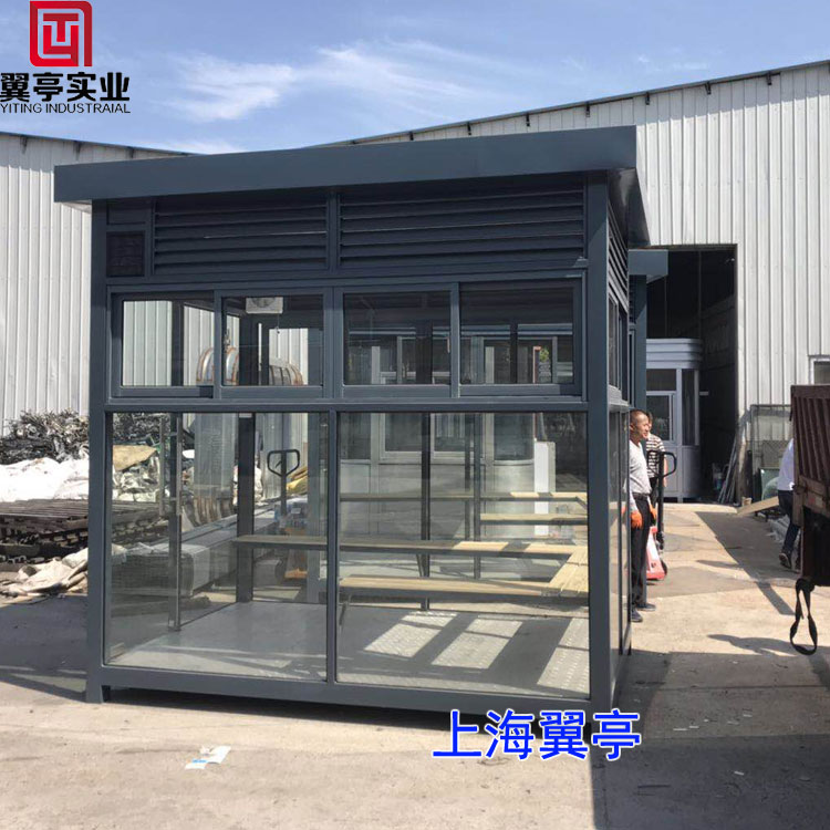 1、吸煙亭尺寸為長3米、寬2米、高2.9米、上海翼亭崗亭廠家也可以根據(jù)你的實際需求進行定制