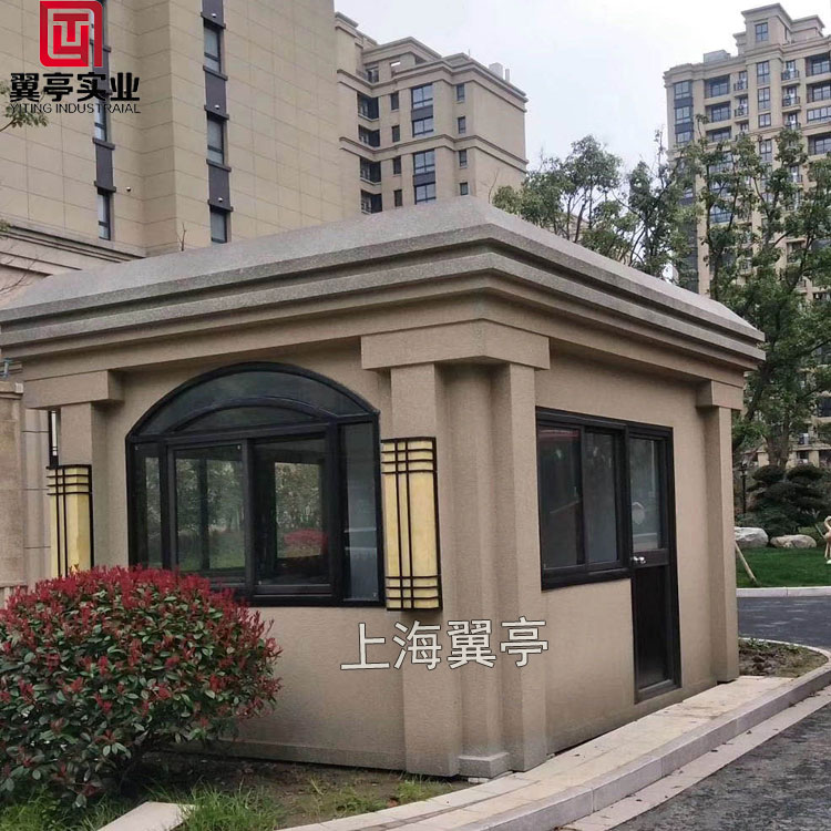 主要特點 由我們上海翼亭崗亭廠家定制的真石漆門衛值班室,總能給你不一樣的視覺感受,有的真石漆崗亭外觀豪華、大氣、有的真石漆崗亭小巧精致、但是也有真石漆崗亭給人一種厚重的感覺。如我們的YT-ZS12真石漆崗亭外觀看上去就有一種厚實的感覺。與我們建筑物很是相類似。