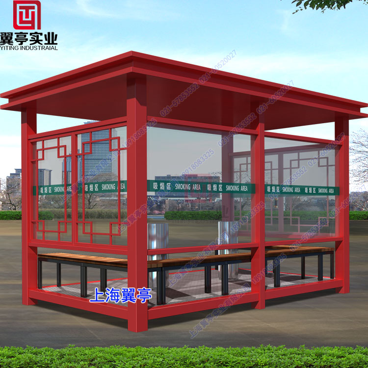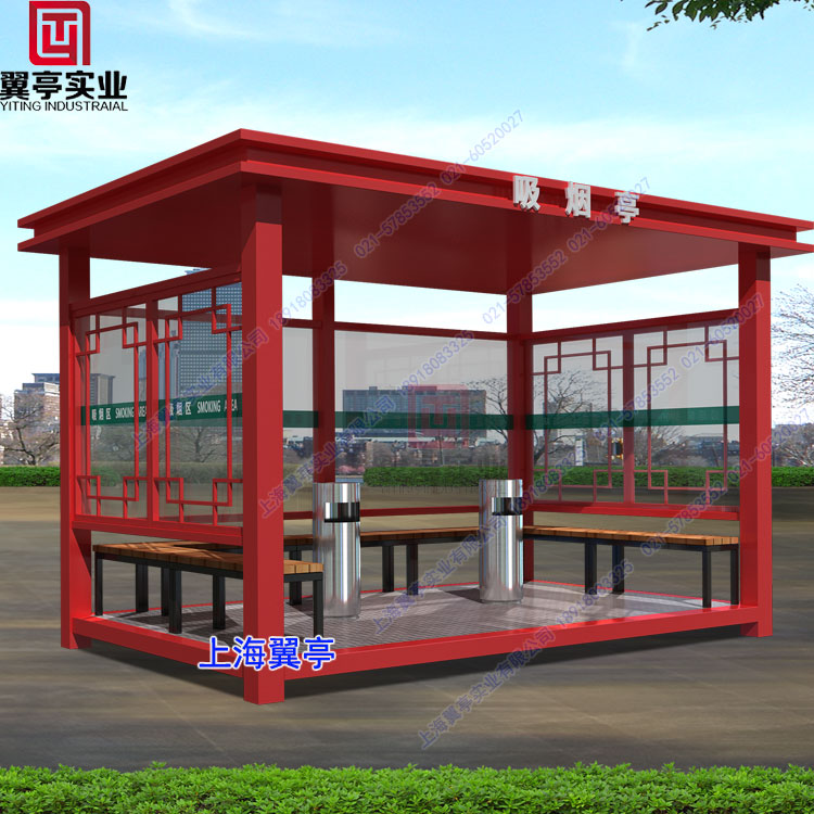 一個有生產實力的崗亭廠家、不但要具備生產能力還要全面發展,崗亭設計能力也要跟上。這款簡易紅色的吸煙亭就是由我們設計師AMY設計,風格路線還是采用的簡易方式,看似簡單但是處處都顯示它的與眾不同,吸煙亭頂部才有雙層凹凸的頂,既美觀又更具備立體感。固定的玻璃墻體也采用了上下兩面為空,中間為固定玻璃,但是固定玻璃上采用了細小的金屬鍍鋅方管為裝飾圖,吸煙亭頂部更是有非常顯眼的吸煙區字樣。吸煙亭設計的每一個細節都體現了我們設計師都工作的認真以及我們翼亭崗亭廠家崗亭設計都具有豐富崗亭設計經驗。買吸煙亭到我們上海翼亭崗亭廠從設計與制作都一路與您相伴!